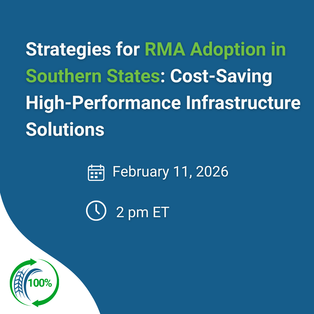 Discover the path toward sustainable and high-performing roads with rubber-modified asphalt (RMA), a cutting-edge technology that transforms end-of-life tires into valuable infrastructure solutions. This webinar explores RMA’s current applications, performance data, and collaborative opportunities to accelerate adoption across the United States.